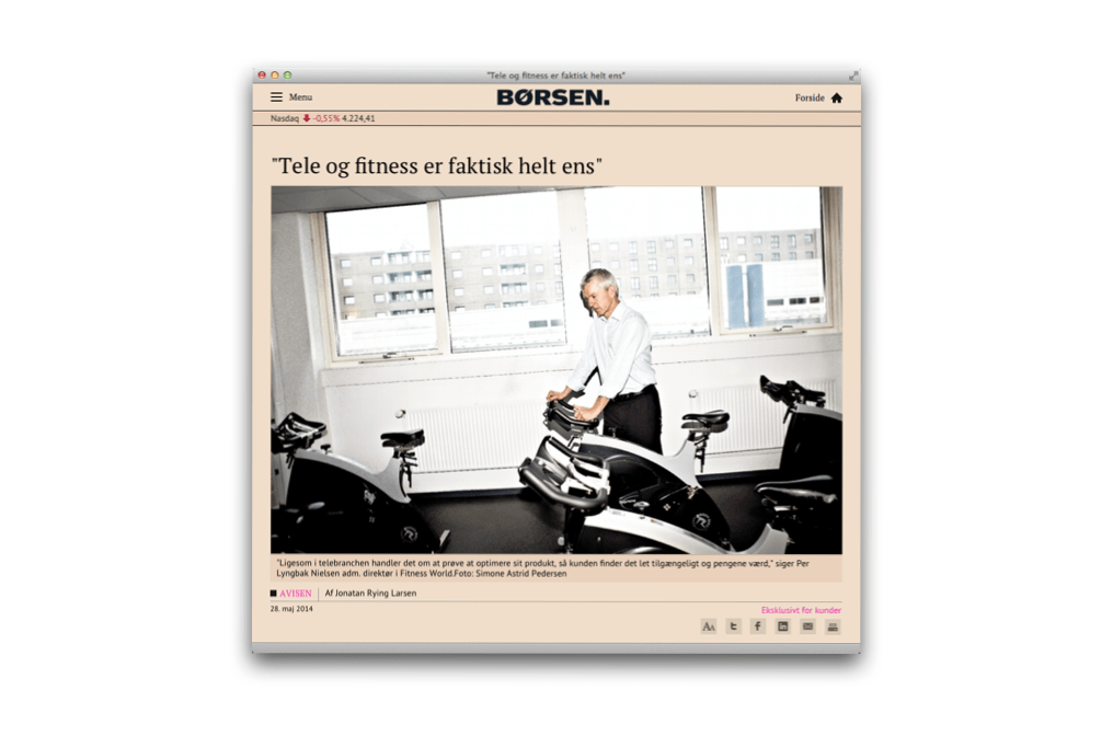 Jeg havde helt glemt hvor interessant dagbladet Børsen egentlig kan være, når det er bedst. Men så læste jeg interviewet for et par dage siden med Per Lyngbak Nielsen, chefen for Fitness World – Danmarks største fitnesskæde – hvori han konstaterer at “tele og fitness er faktisk helt ens”. Interviewet fik mig til at tænke over, hvad det egentlig er for nogle forretningsmodeller, der har mest succes i disse år.
