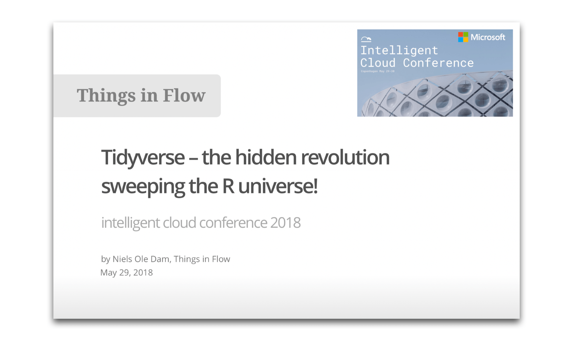 Last week I had the pleasure of introducing the magic of The Tidyverse at the Intelligent Cloud Conference here in Copenhagen. This blog post is a short introduction to my talk – and also contains a link to the slides I showed during the presentation. They’re all made with R, of course.
